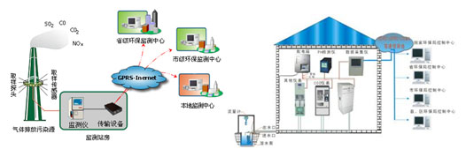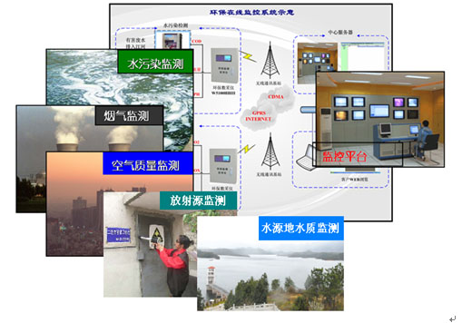 固定污染源监测 固定污染源监测实现废水和废气的排放定性定量监测,废水监测指标有COD(化学需氧量)、氨氮等指标;废气监测有SO2、Nox、颗粒物、烟气参数等指标。监测数据10分钟上报一次,数据传输线路目前以2.5G/3G和光纤为主。 根据国家节能减排指导要求,借鉴“税银一体化”的征管思路,对污染源企业实行排污费预征收制度。环保局每月根据地区排污总量指标,分配给污染源企业一定的排污额度。当企业排放污染物指标、排放总量超过购买额度时,系统反控关掉排污阀门,并及时通知企业重新购买排放总量。