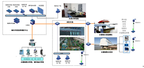 饮用水源地环保监测 建立以城市环保指挥调度中心为网络核心的城市居民水源地自动化控制系统网络,利用中心与水质分析监测站、取水泵站、高位水池和取水输水管道监控系统之间的光纤数据网络,进行水质指标数据、视频和控制信息的传递和数据融合,达到保障水源地的饮用水源水质安全的管理要求。