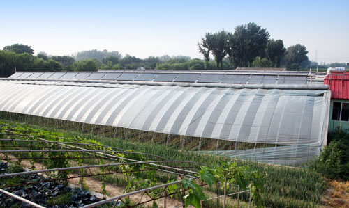 采用太阳能集热板替代普通的塑料材料,具有轻巧、易组装、透光保温性能好等特点,能有效吸收太阳能,散热小,实现全年不间断生产。大棚内采取立体式种植,共分三层,上面两层采用无土栽培技术;下层主要以育苗和种植高档花卉为主。同时,高标准沼气池、牲畜暖圈等附助设施还可用来发展循环农业,节本增效。 ![]() 太阳能阳光板: 1.适合安装在大棚棚顶,替代原有塑料材料,安装简便、易于维护。 太阳能集热器: 1.适合安装在屋顶及其他可固定安装位置(钢结构支架上等)安装 2.集热器接口设计规范,连接管道及其他配件方便,安装维护方便 3.集热器型号多样,可满足任何空间安装,客户选择多样化 管路系统及配件: 1.管路设计规范,选材经济合理,安装美观大方 2.配件设计规范,市场购买方便,可操作性强 储热系统: 1.专利工程水箱,防腐性能强,水嘴设计规范合理,连接管路方便 2.保温层为聚氨酯发泡一次成型,发泡均匀,保温效果好 3.型号齐全,可满足用户80吨以下各种需求 换热系统: 1.采用换热系统水质不混合,系统水质好 2.设计独立换热系统可满足用户多种多样用热点水质、水压和水量的需求 控制系统: 1.单片机多点控制,性能稳定 2.控制界面人性化,模块清晰,操作方便 2、系统得热量多,热损失小 |